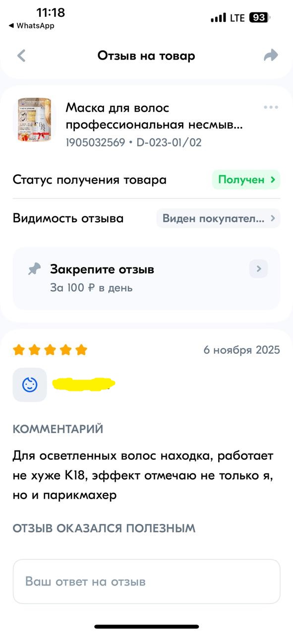 Брала как альтернативу Olaplex — результат понравился, волосы гладкие, блестят, не утяжеляет.